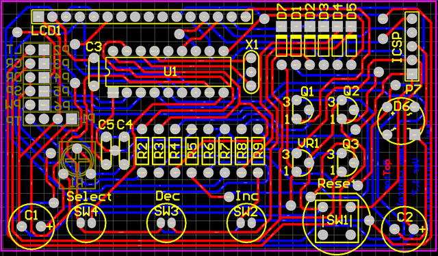 Once you have created a schematic diagram of your project you are ready to export Netlist in to a PCB document. Doing so will automatically create all necessary component footprints and logical connections on a blank PCB document (refer to the picture on left). The next step is to move the component footprints around to comply with your PCB size and shape making sure component heights have no contentions. In the picture to the left most components are underneath the LCD. This process is called PCB Layout.